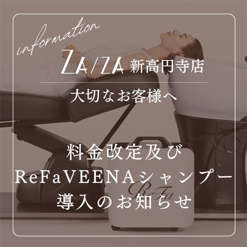 【重要】2025年11月新高円寺店料金改定及びReFa VEENAシャンプー導入のお知らせ